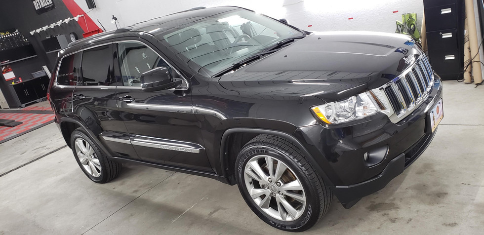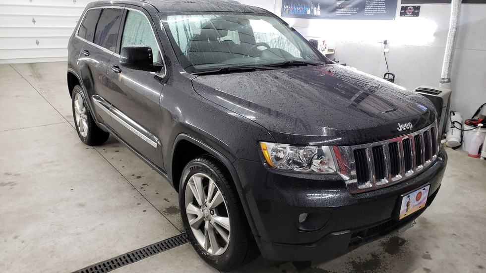 Having previously done a few vehicles for the owner of this Jeep including his wife's new Jeep Cherokee and a few vehicles for the company he works for it was finally his turn to have his vehicle done. As you can see in the before pictures this Metallic Black paint was in quite poor condition. We settled on our CQuartz UK Service for amazing protection and easy maintenance without the big price tag of one of our Professional Coatings. The results blew away the owner as it looked like a totally different vehicle once finished.